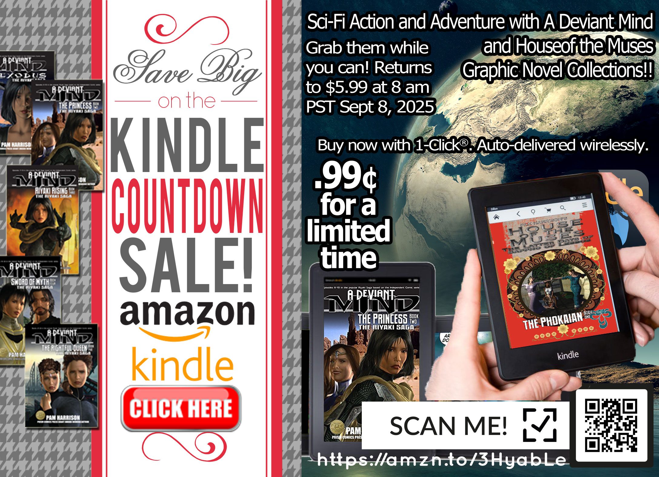 Sci-Fi Action and Adventure and Award Winning Historical fiction with A Deviant Mind and House of the Muses Graphic Novel Collections!!